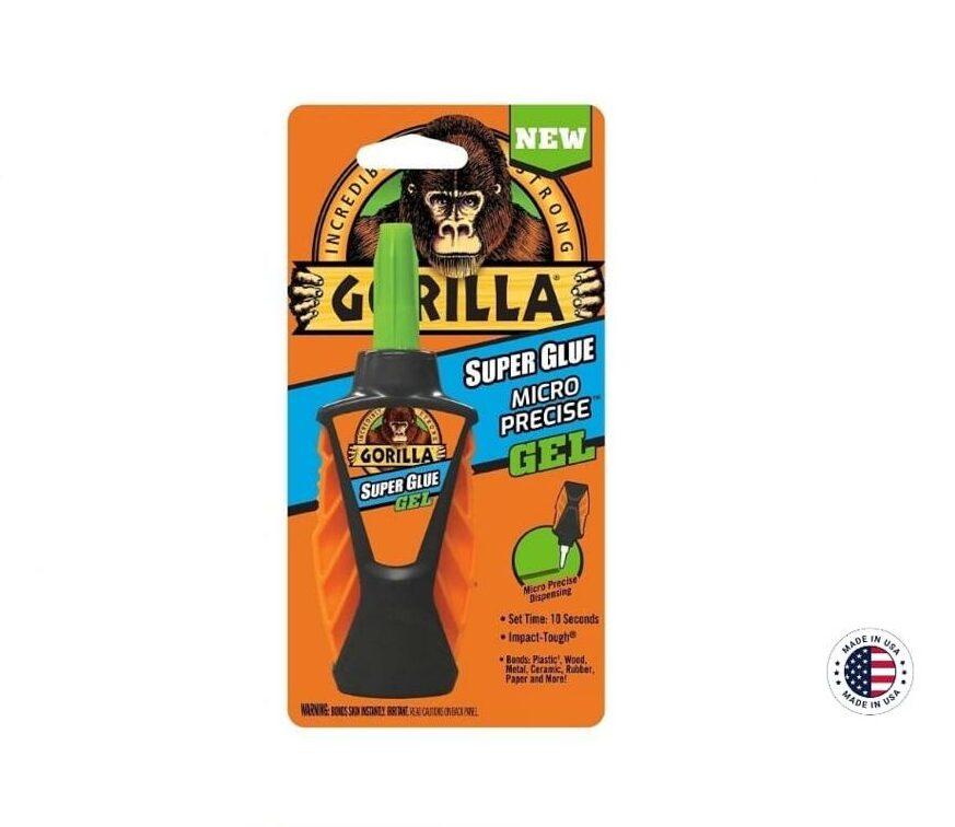 Gorilla Super Glue Micro Precise is a cyanoacrylate super glue that delivers exceptional control and precision for small repairs and intricate bonding projects. The fine-tipped applicator allows for pinpoint application, ideal for bonding jewelry, electronics, and other delicate items. Gorilla Super Glue Micro Precise cures quickly and forms a strong, long-lasting bond.