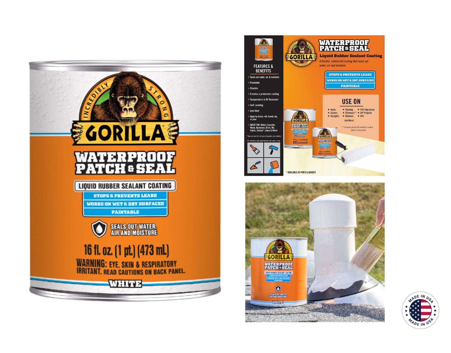 Gorilla White Sealant Coating (473 ml) is a tough and flexible rubberized coating that provides excellent waterproofing and protection for various surfaces. This spray-on sealant is ideal for roofs, gutters, flashings, and more. Its white finish reflects sunlight and helps regulate temperature.
