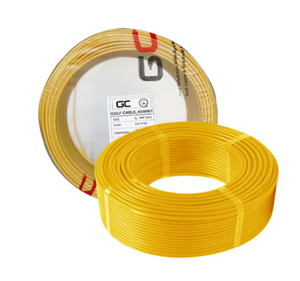 GULF CABLES Wire 4mm, Cu/Pvc, Single Core, Yellow