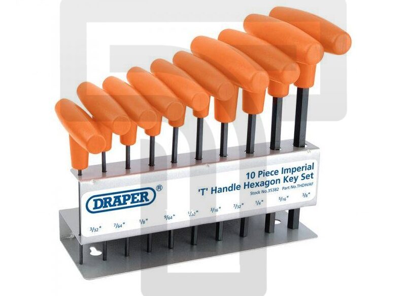 Equip yourself for various hex projects with Draper’s durable Allen key set (3/32″ to 3/8″).