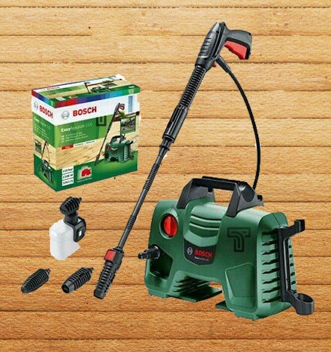 Clean effectively with the Bosch 130 Bar High-Pressure Washer. This powerful high-pressure washer features a 130 bar pressure rating and 1300W motor, ensuring efficient cleaning for vehicles, patios, and outdoor surfaces.