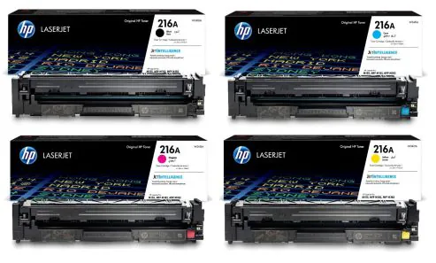 The HP 216A Original LaserJet Toner Cartridge Set includes black, cyan, magenta, and yellow cartridges designed for crisp, professional-quality printing. With JetIntelligence technology, this set ensures fast, reliable performance and dependable toner level tracking. Delivering up to 1,050 black pages and 850 color pages, it’s ideal for business and home use. Genuine HP toner provides vibrant results, secure anti-fraud technology, and long-lasting value.