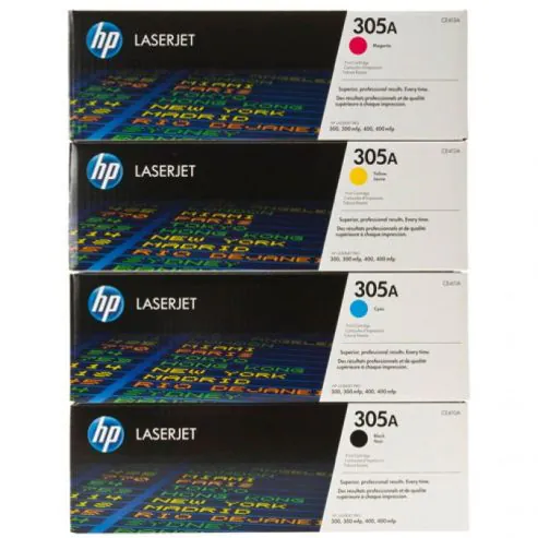 The HP 305A LaserJet Toner Set delivers sharp black text and vibrant color prints for professional-quality results. Compatible with HP LaserJet Pro 400 Color MFP (M451 series) and Pro 300 Color MFP (M375nw), these cartridges ensure reliable and consistent printing. Each cartridge is designed for exceptional yield, minimizing downtime and keeping printing costs low. With easy installation and the trusted performance of Original HP technology, this toner set is ideal for busy offices and home workspaces.