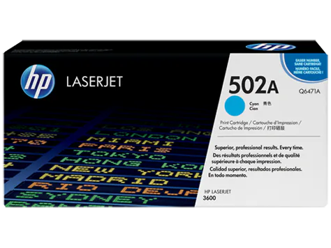 The HP 502A Cyan Original LaserJet Toner Cartridge (Q6471A) delivers vibrant, high-quality cyan prints for professional and personal use. Designed specifically for HP Color LaserJet 3600 printers, this genuine HP toner cartridge produces approximately 4,000 pages, offering long-lasting performance and exceptional reliability. Original HP toner ensures crisp, consistent results and helps prevent wasted supplies. Easy to install and built to maintain your printer’s optimal performance, the HP 502A Cyan toner is ideal for high-quality color printing with every page.
