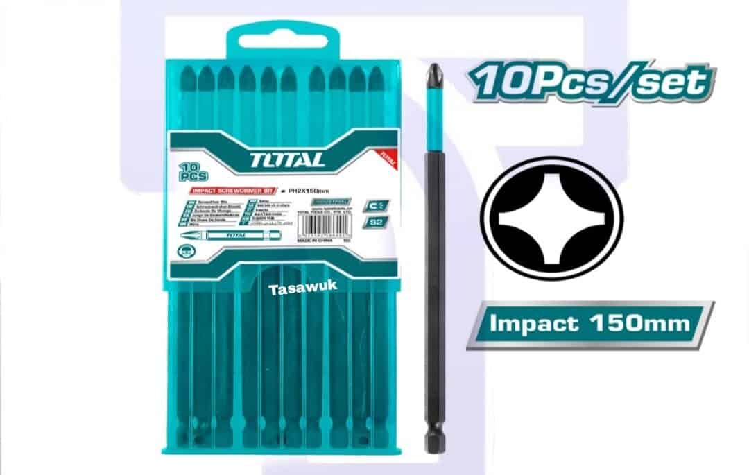 Conquer demanding fastening tasks with Total’s durable 10pc impact screwdriver bit set. 150mm length for extended reach.