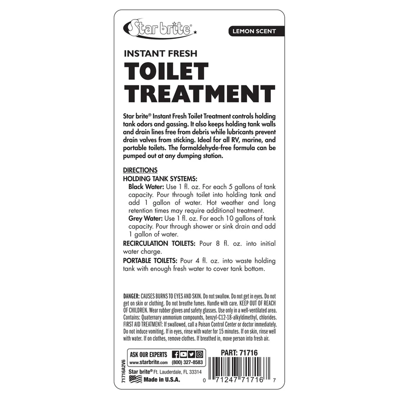 Instant Fresh Toilet Treatment is a simple one-step, highly effective way to deal with the boat’s holding tank that eliminates the need for multiple chemicals. This efficient, biodegradable formula quickly breaks down waste to remove potential odors, while leaving a light, pleasant scent behind.
