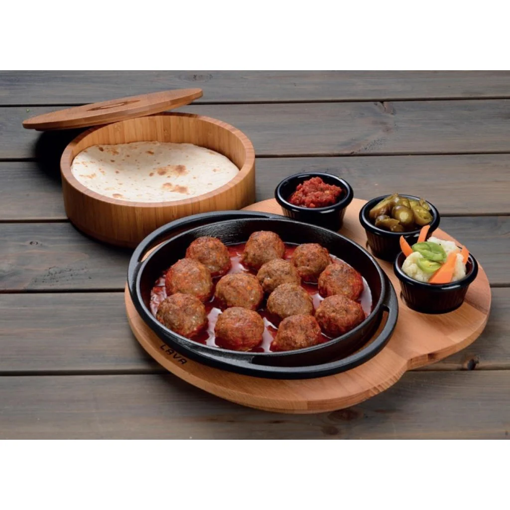 LAVA ROUND DISH AND WOODEN PLATTER WITHOUT SAUCE CUPS – 20 CM