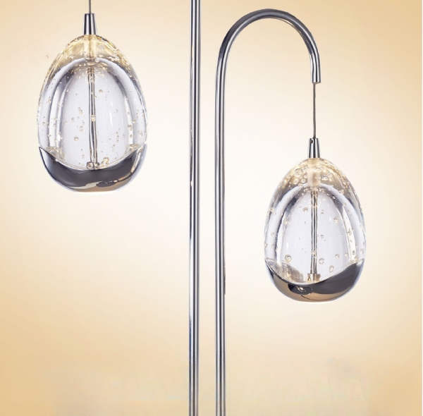 LED 2 light table lamp in polished chrome and clear glass finished