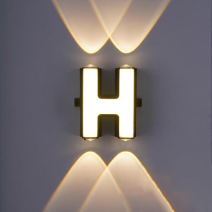 LED Alphabet Wall Lamp Letter Sign Wall Light Black Outside Indoor Decorative Light Letter H