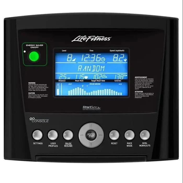- Console: Readouts Program name, date and time, calories, distance, RPM, heart rate, speed, resistance level
