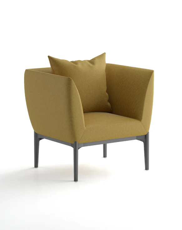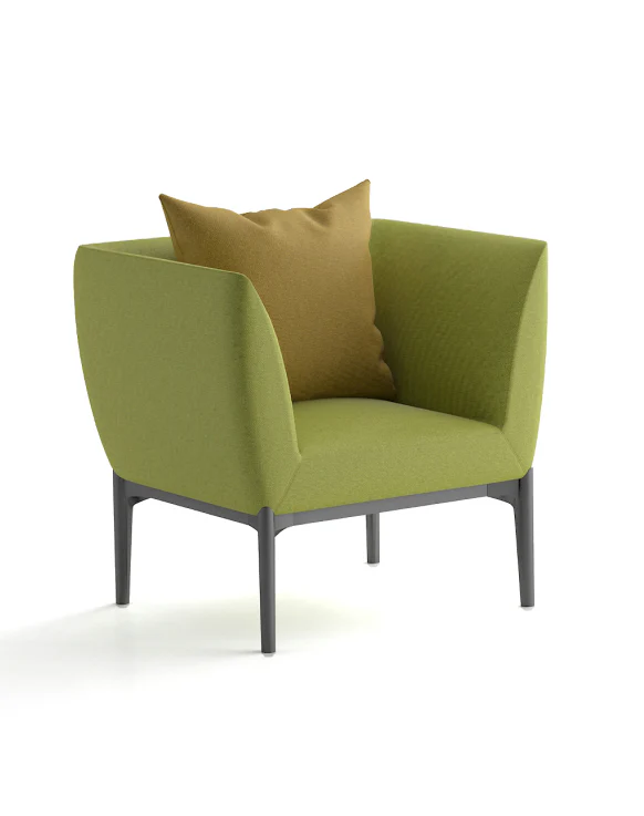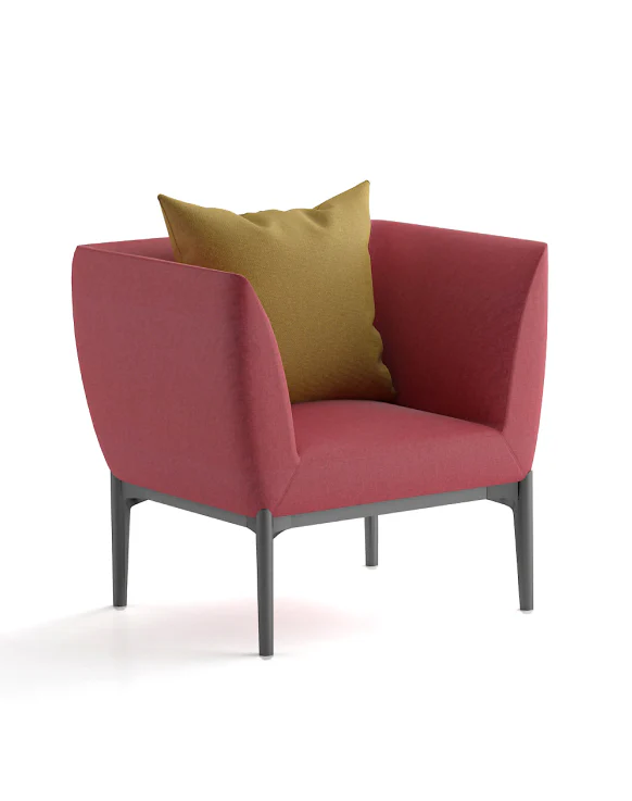 Modern and comfortable sofa featuring soft cushioning, vibrant upholstery, and sturdy dark grey steel legs. Designed for acoustic comfort with integrated seat and back cushions. Available in a range of fabric options and colors.
