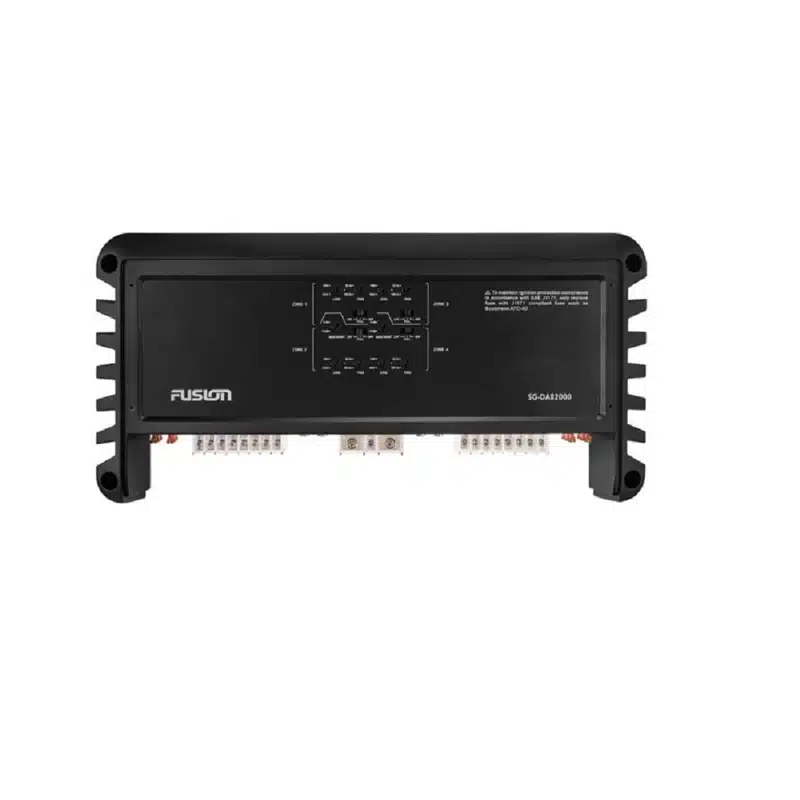 The SG-DA82000 is Fusion’s first 8 channel, Class-D Hi-Fi marine amplifier. The key benefit of a Class-D amplifier is that it has a low battery drain with high output, making this the perfect amplifier for the marine environment. The SG-DA82000 also has conformal coated PCBs for maximum product life and performance, plus the amplifier chassis is a heat sink, to reduce component core temperature and increase efficiency.