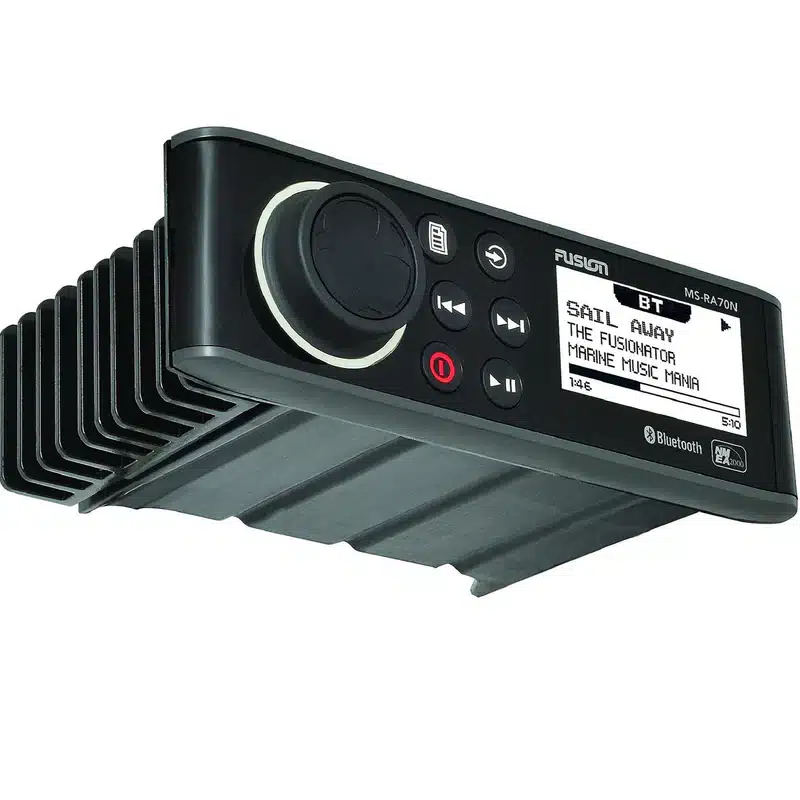 FUSION-Link NMEA 2000 ready for connection and control from any supported Multi-Function Display – The MS-RA70N is a Fusion-Link Wired NMEA 2000 certified product and is compatible with a range of the world’s leading Multi-Function Displays for on-screen audio control. When pairing the MS-RA70N with a supported Chartplotter or Fish Finder, you bring your music to the big screen, allowing you to keep an eye on the charts or the fish while skipping tracks or adjusting the volume at the same time. In addition to MFD control, the MS-RA70N will connect to any Fusion NRX series remote control attached to the same powered NMEA 2000 network for localized control of the audio zones.