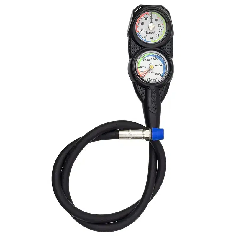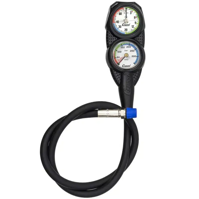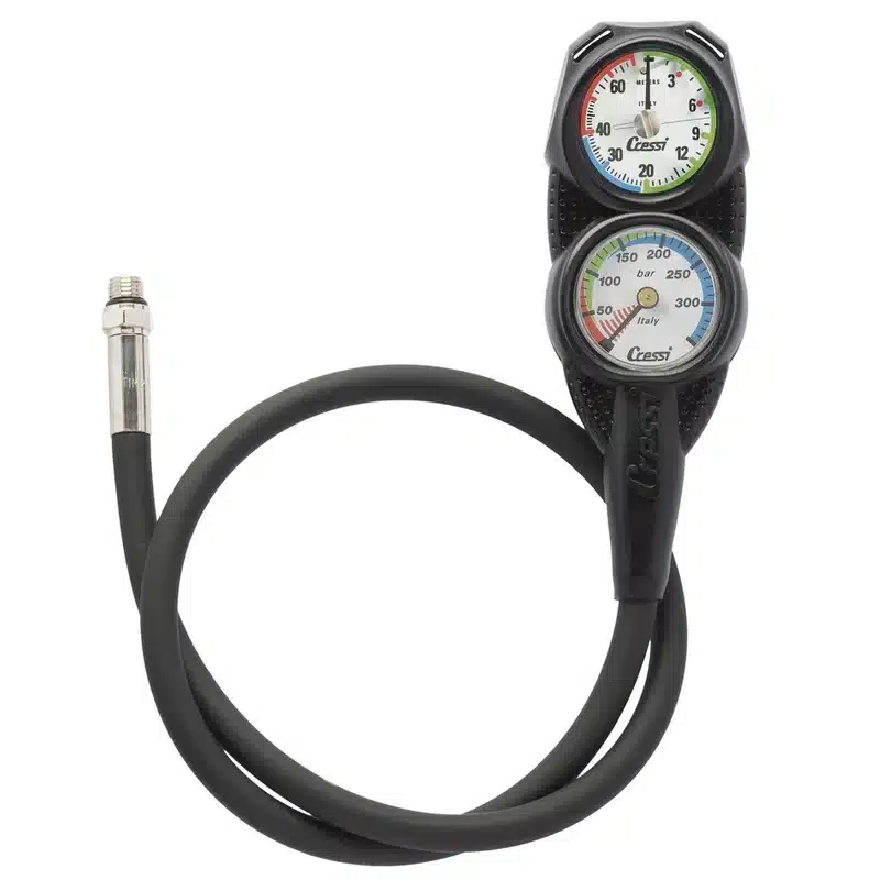 Mini Console PD2 is a small console that houses the Cressi mini pressure gauge and a new, small, analogical depth gauge.