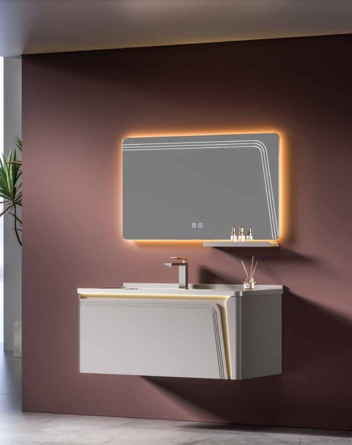 Modern Bathroom Cabinet with LED Mirror and Faucet