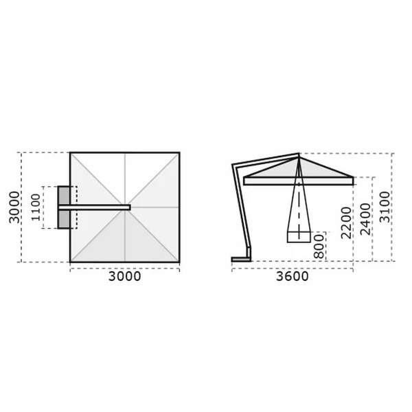 FABRIC :  Acrylic Dralon 350gr/m2 waterproof Teflon and anti-mold treated. With wind cap.