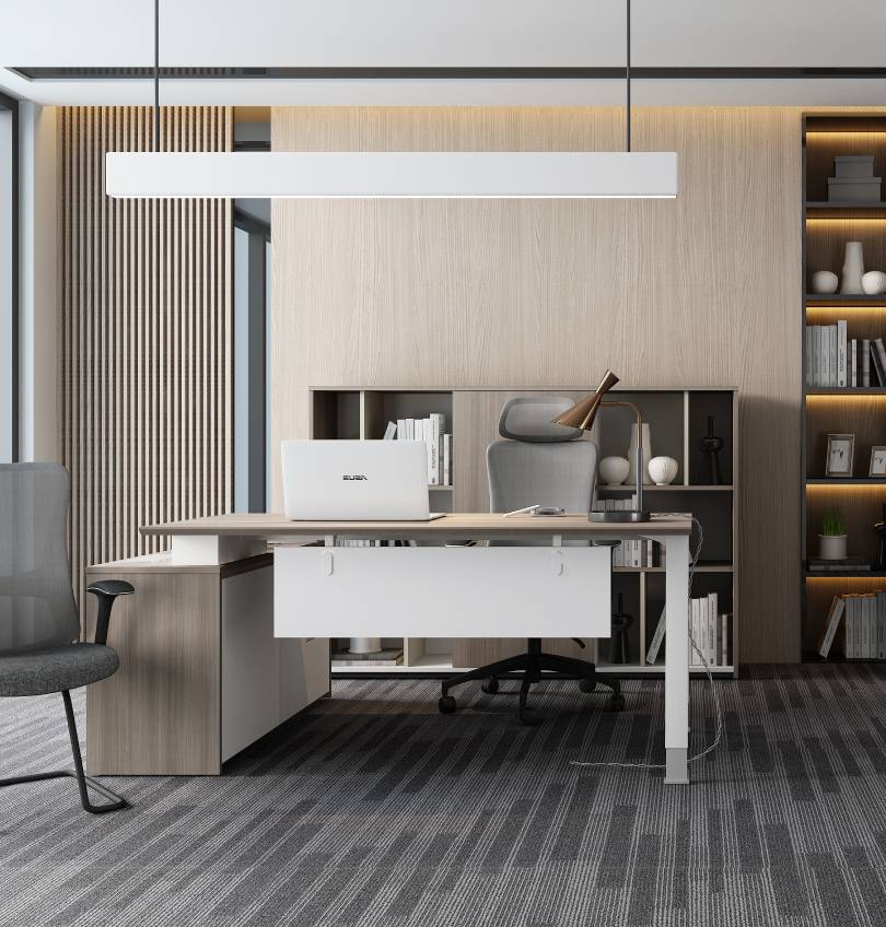 The Noqi L Shaped Manager Table with Fixed Side Storage is a beautiful addition to any office executive desk. Its sleek, modern design is sure to be the envy of everyone else in the building.