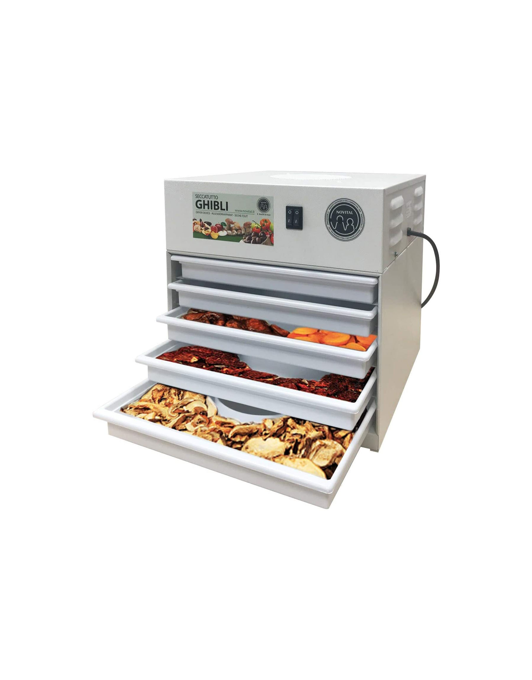 Novital Food Dehydrator, Electric Food Dryer with 5 Trays, Ideal for Fruit, Healthy Snacks, Vegetables, Meats & Chili for Commercial Home and Kitchen (Made in ITALY)