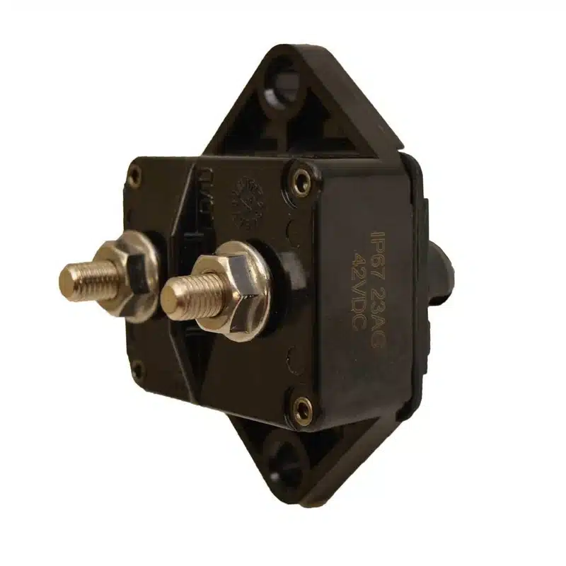 Single pole thermal type switchable reset circuit breakers. Typically used in auxiliary and accessory circuits. Sealed for engine compartment and bilge area applications.