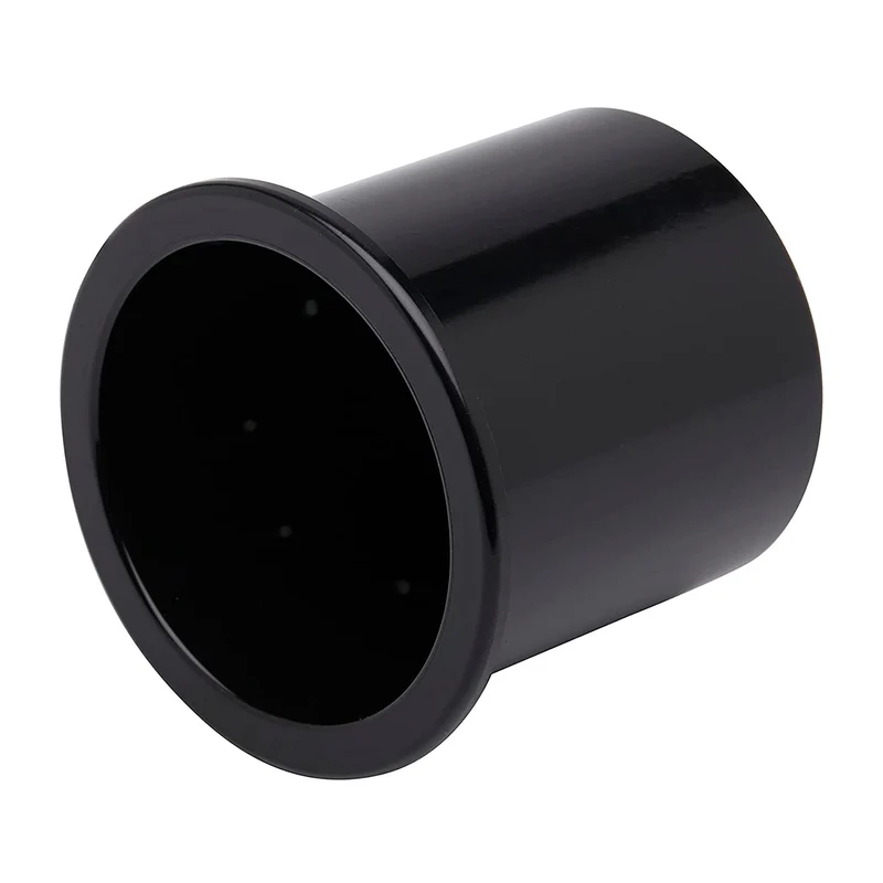 Recessed mount black plastic drink holder for boats.