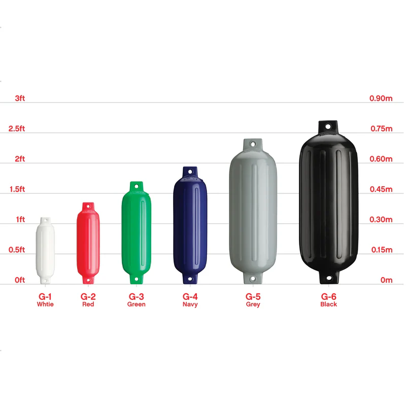 Polyform’s G Series boat fender has raised the bar for quality and appearance in utility fenders. Subscribing to the philosophy that quality does not have to cost more, we include ribs for extra strength, inflation valves for larger sizes and reinforced ropeholds for long-term durability. The versatile G Series fender comes in a variety of Polyform colors, enabling you to create the look you want for your boat.