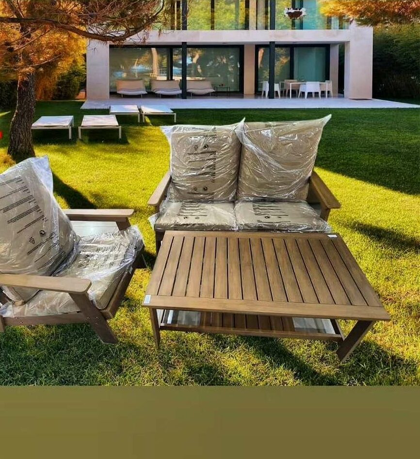 Double Seat Bench -Color:Beige, Single Chair-Color Beige Frame: wood color
