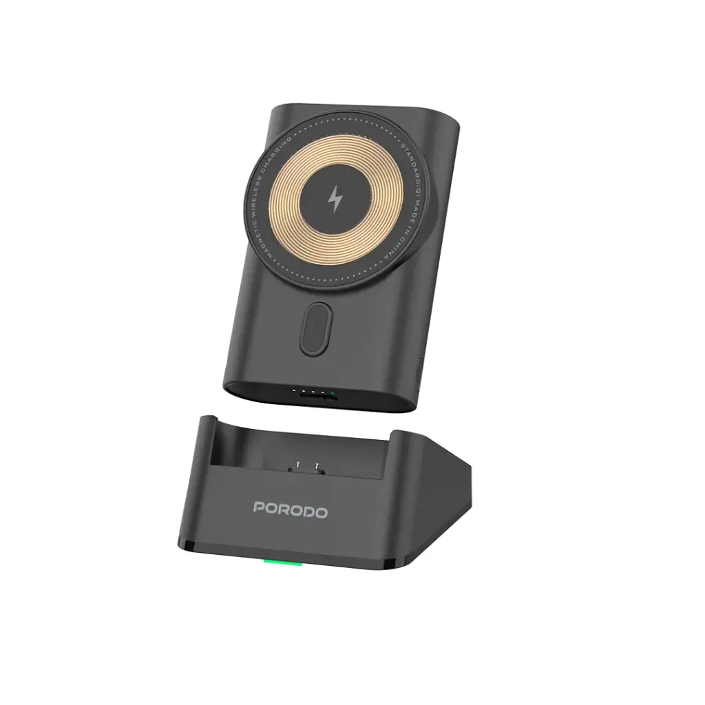 | Porodo 5200mAh Integrated Type-C Magsafe Power Bank with Transparent Design, Pass-Through Charging, Integrated Type-C Cable – Black |