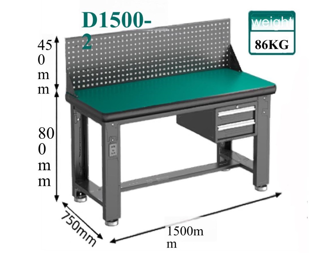 Size : 150 x 75 x 80-90cm, with Pegboard & 2 Drawers