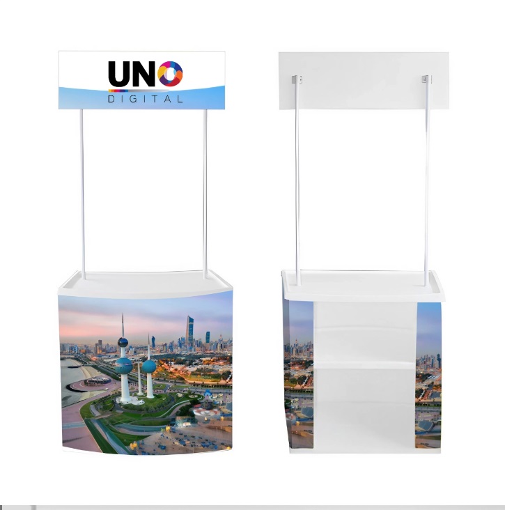 Maximize your brand impact at every event with this high-quality promotional display counter – a perfect mix of functionality, portability, and brand exposure!