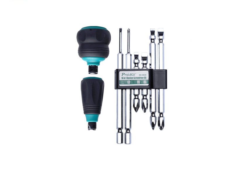 Equip yourself for various screw driving jobs with Pro’s Kit’s versatile 10-in-1 ratchet screwdriver set. Includes multiple bits & sizes.