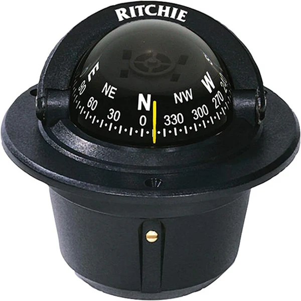 This compass series is for fast runabouts, bass boats, center consoles and sport boats. Flush mount type, white case. Features include built-in compensator magnets, 12V DC night lighting, jewel and steel pivot movements and movable sunshades.
