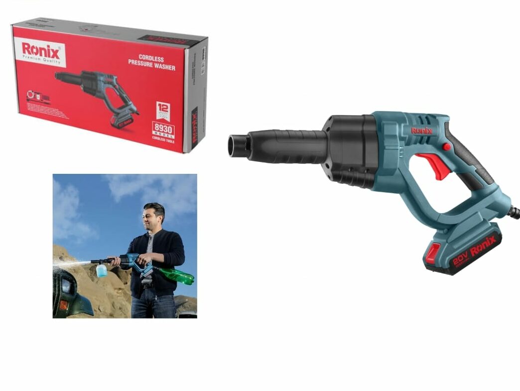 Enjoy portable cleaning power with the Ronix 20V High Pressure Washer. This convenient cordless pressure washer delivers up to 24.5 bar of pressure and is powered by a 20V battery (sold separately) for effortless cleaning tasks. Compact and lightweight for easy maneuverability. Ideal for cars, bikes, and outdoor surfaces. Get your Ronix 20V High Pressure Washer today!