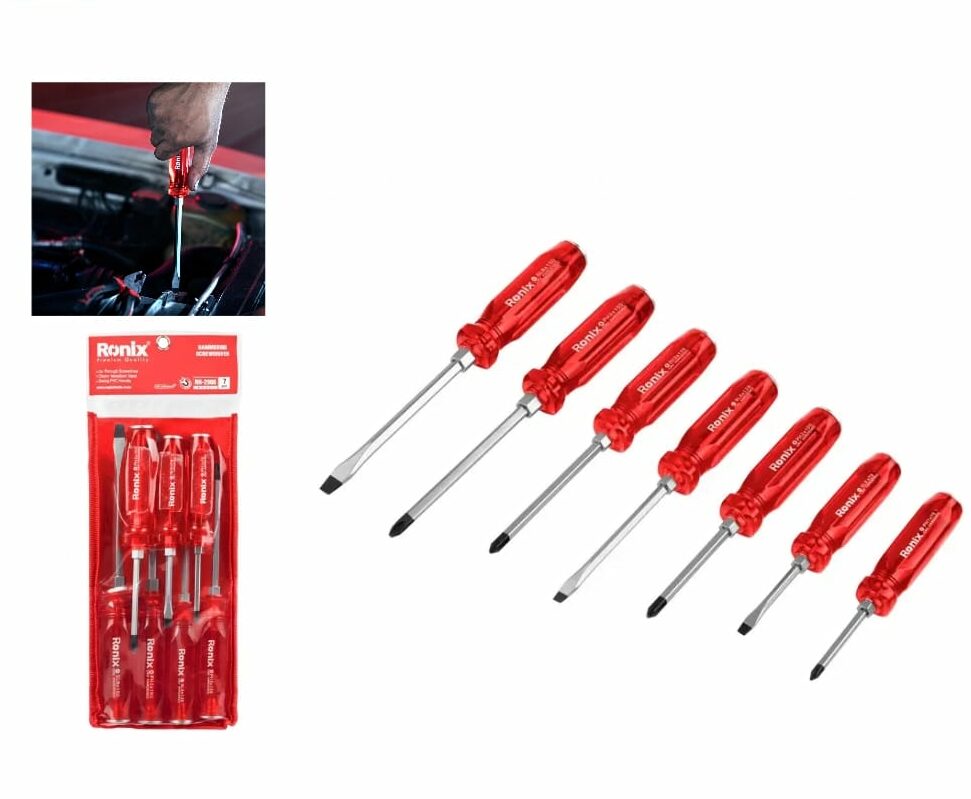 Drive screws with force & control using Ronix’s durable 7-piece hammering screwdriver set. Ideal for professional use.