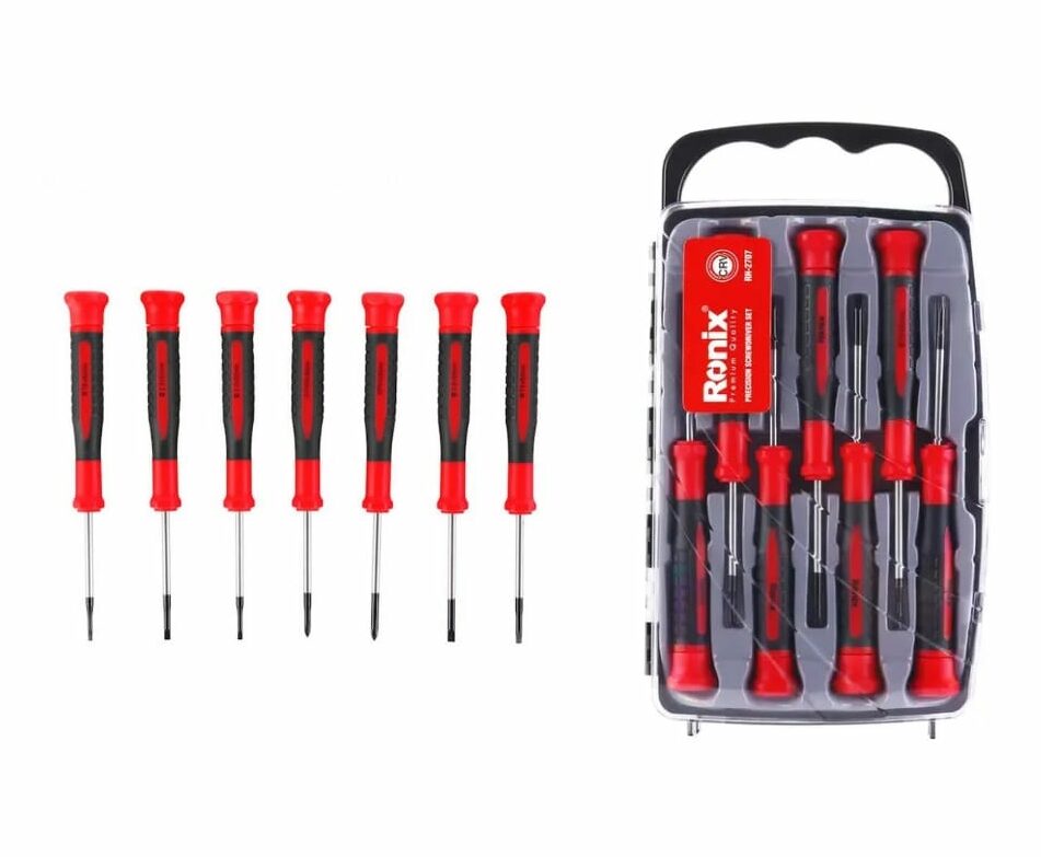 Tackle delicate tasks & precision screw jobs efficiently with Ronix’s 7-piece precision screwdriver set. Ideal for electronics repair, jewelry making, & more.