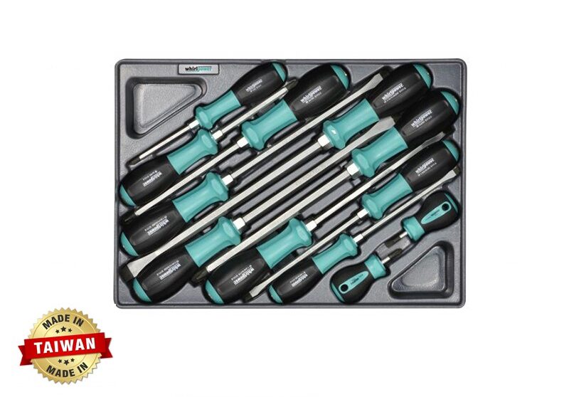 Whirlpower’s 12pc screwdriver set features precision tips for various fastener types. Comfortable handles & durable steel for reliable performance.