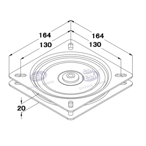Dimensions : 164 mm L x 164 mm W square.