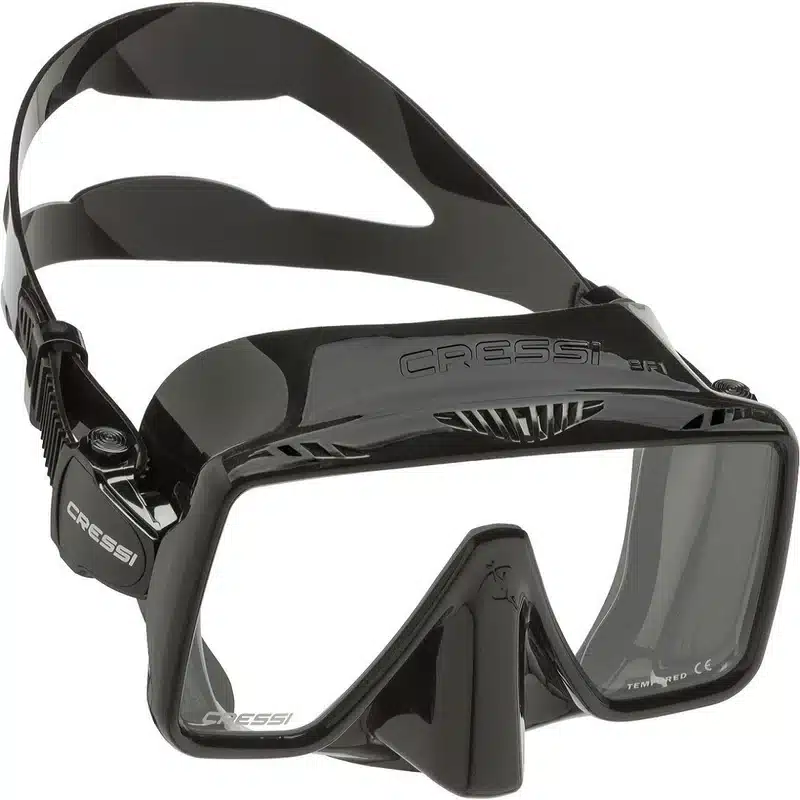 The SF1 Cressi’s frameless scuba diving mask for ladies and men. The frameless masks are loved by many divers for their low-profile and ability to fold flat for easy carrying, even in a BC pocket. Cressi’s frameless design bonds a high-grade silicone skirt directly to a single lens for the ultimate in simplicity.