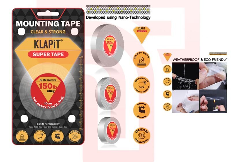 Klapit Double-Sided Tape is a convenient and versatile solution for mounting lightweight objects to smooth surfaces. This slim tape provides a reliable hold that supports up to 68kg, perfect for posters, photos, and other decorative items. The 3-meter length is ideal for smaller mounting tasks. Klapit Double-Sided Tape is easy to use and removes cleanly without damaging surfaces.
