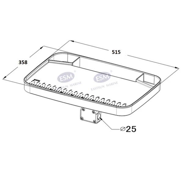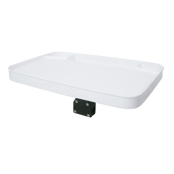 The table top is made of UV-stable polyethylene. It contains two tackle tray in above corners and in between one separate waste area.