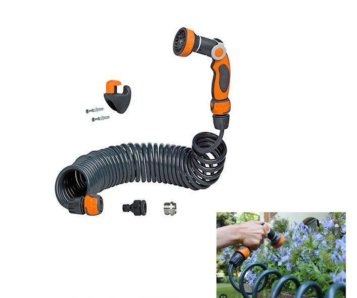 The Claber Spiral Hose Kit Plus (10m) offers extended reach and effortless watering for patios, balconies, and medium garden spaces. Designed with a durable, self-coiling structure, this Spiral Hose Kit automatically retracts for easy, space-saving storage. Its flexibility and strong water flow make it perfect for users needing a dependable spiral hose, long extended hose, or versatile watering hose for daily tasks. Built for convenience, it handles well around plants, furniture, and tight spaces. Key features include compact storage, extended reach, flexibility, and durable construction.