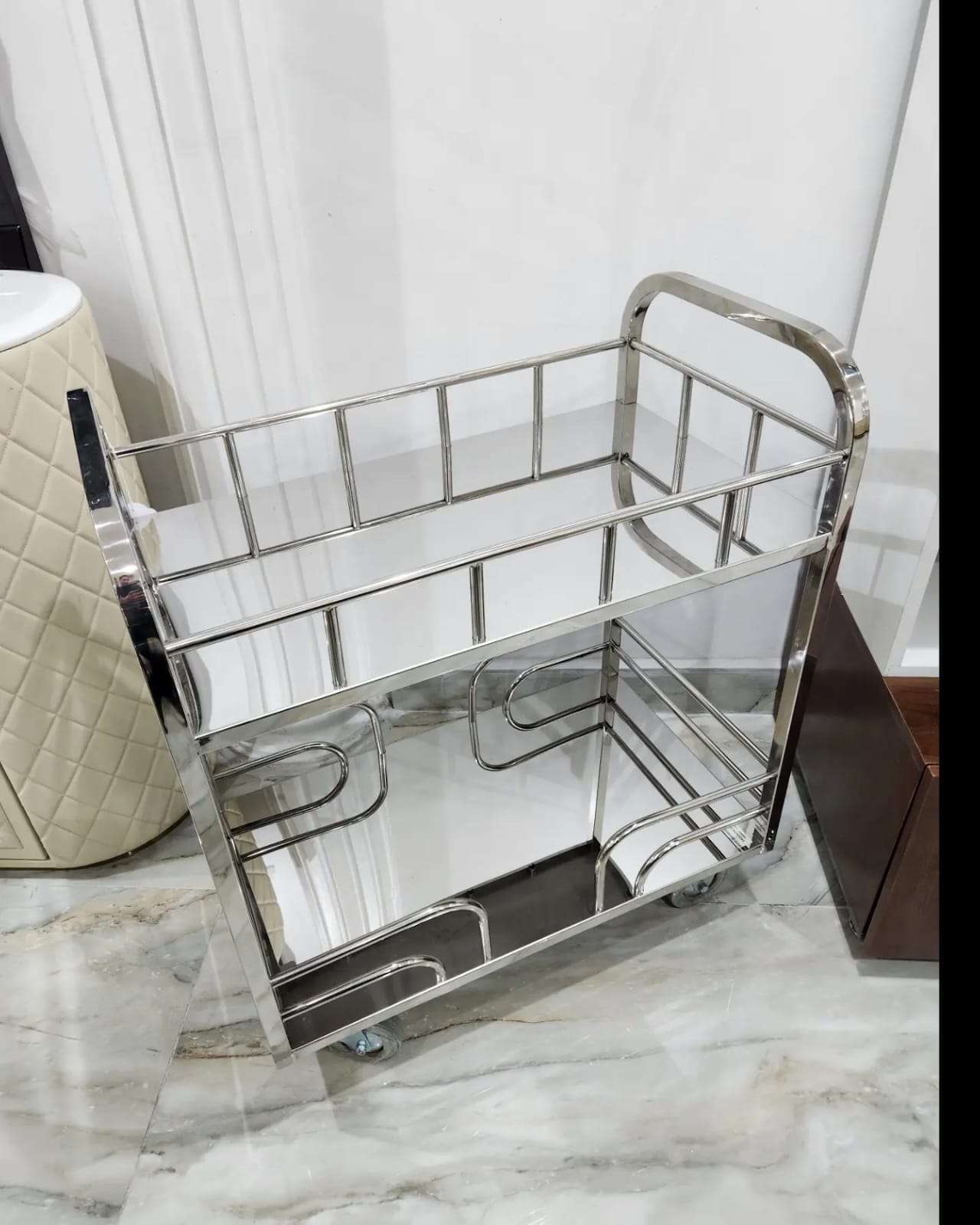 TROLLEY STAINLESS STEEL 201 MORROR FINISH.