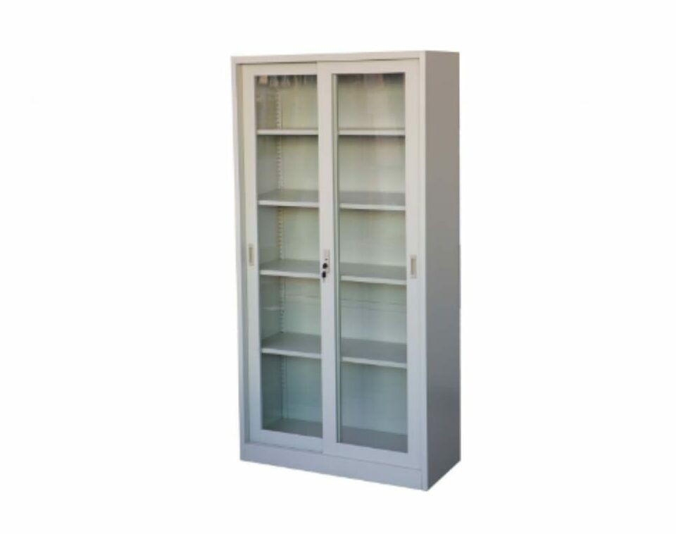 • Steel cabinet with sliding glass door design