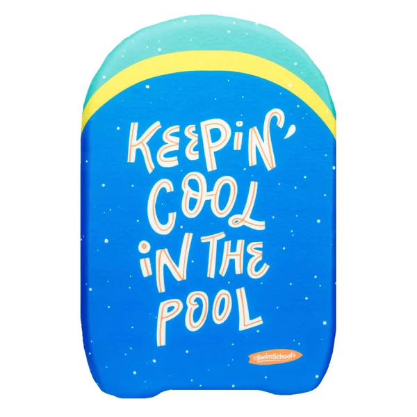 Blue Kickboard reads “Keepin’ Cool in the Pool”.