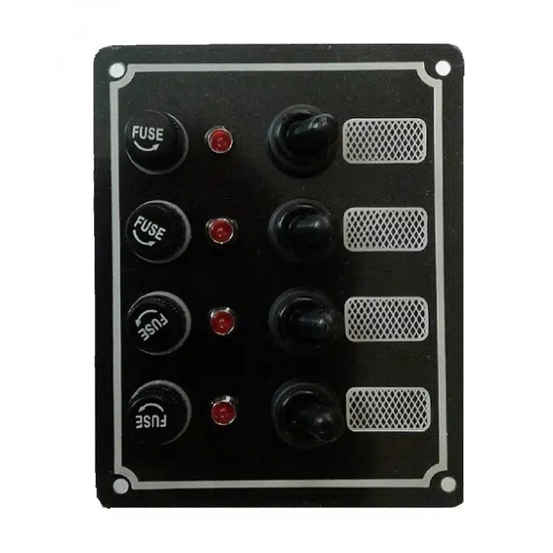 Waterproof Switch panel with fuse holder and toggle switches.