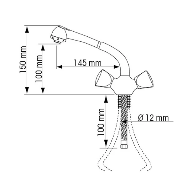 Supplied with 2 x 20 cm metal plumbing hose and screw-type connectors.