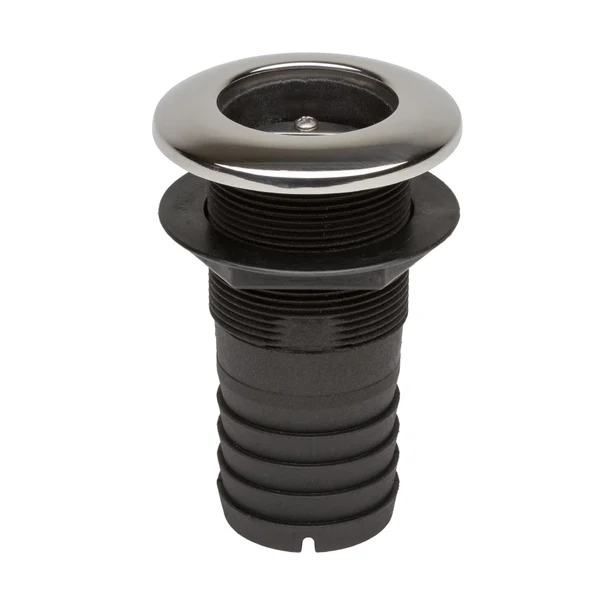 The thru hull connector fitting is used for scupper, sink drain, and bilge pump outboard discharge.