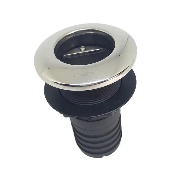 Thru hull with stainless steel cover and valve.