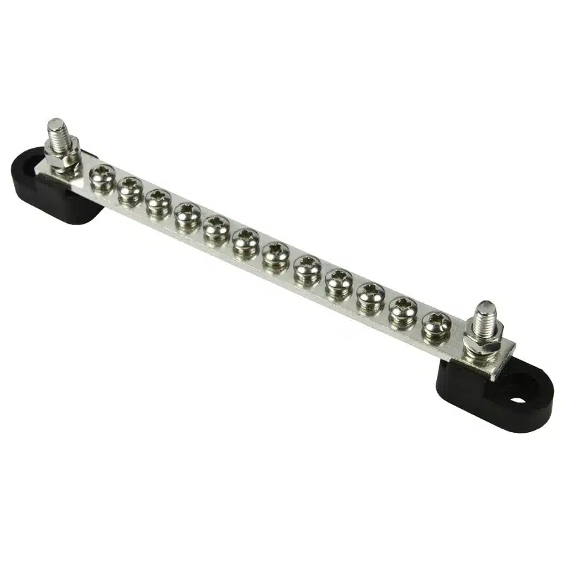 Tin-plated, brass-insulated mounting bases with recessed mounting. Holes to avoid accidental shorts on aluminum surfaces.