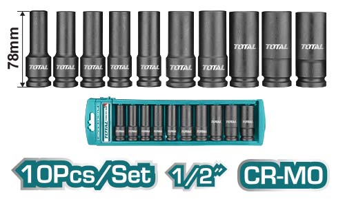 TOTAL 10 Pcs 1/2″ Deep Impact Socket Set