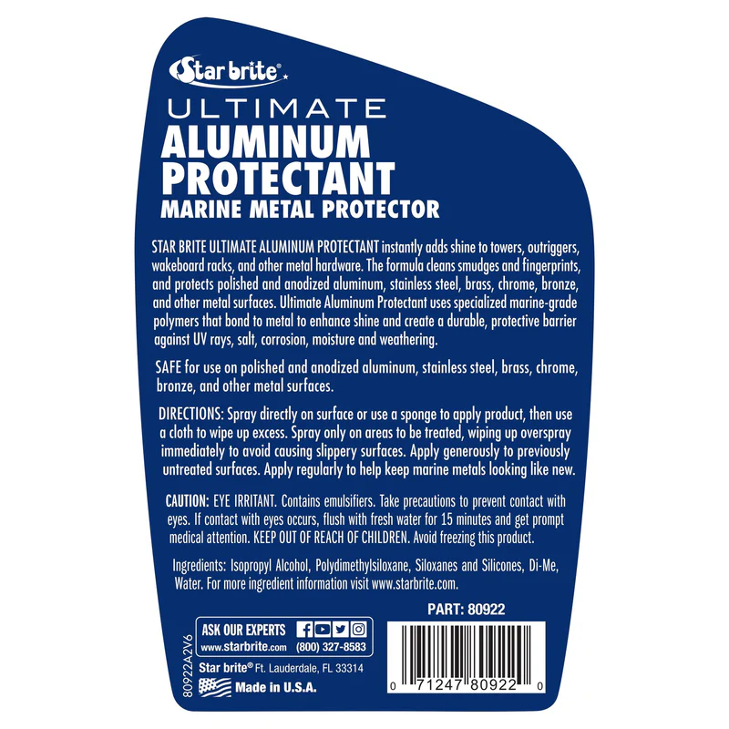 Ultimate Aluminum Protectant instantly adds a shine to towers, outriggers and other hardware. The formula cleans and protects stainless steel, brass, aluminum, chrome, bronze, anodized and other metal surfaces.